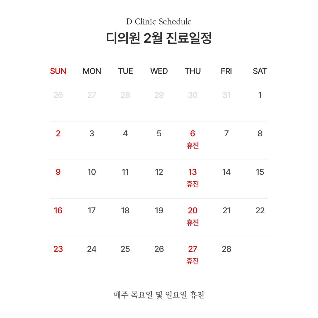 디의원 2월 진료 일정